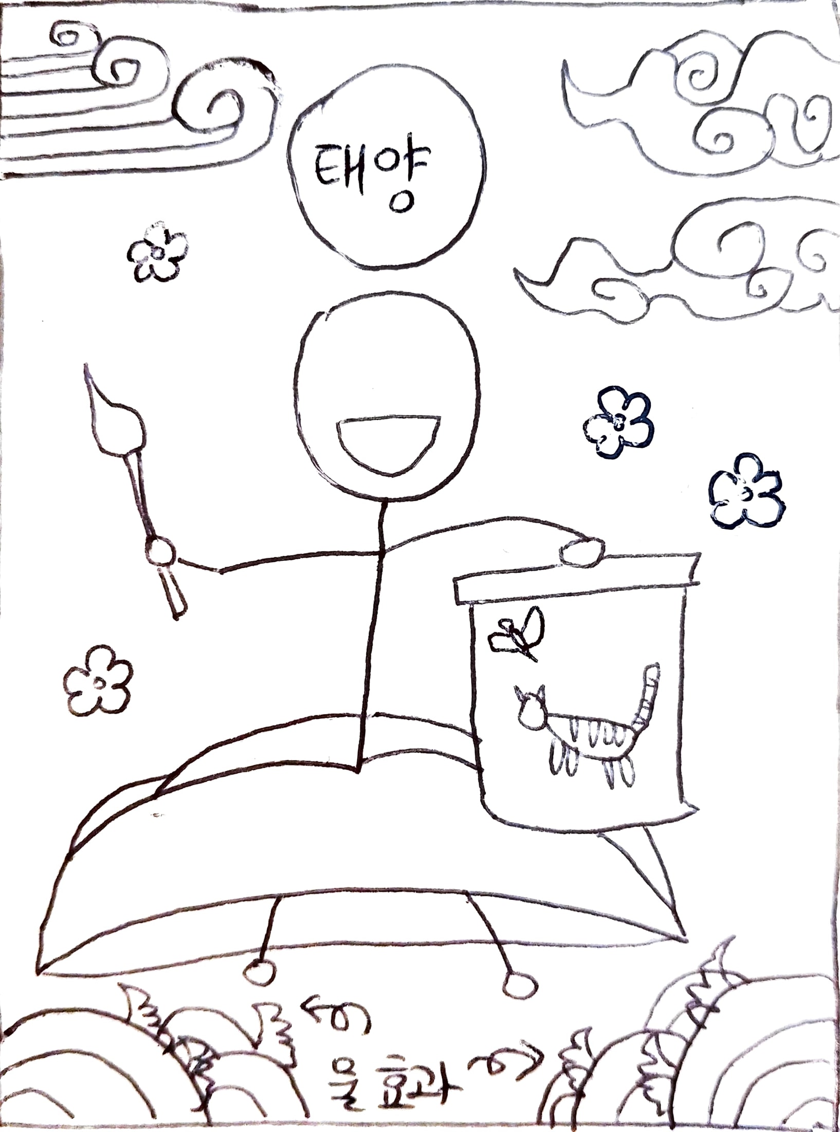 2023년 설날 일러스트는 코르넬리서 양이 맡아 주었습니다 :) 이번에는 러기님께 조선시대 겨울 한복을 요청 드렸고, 배경 디자인 또한 조선의 일월오봉도에서 영감을 얻었습니다. 그리고 문피아 작가의 말에서 말씀드린 것과 같이, 꼬마 왕녀님의 그림은 조선시대 설그림(歲畫)으로 유명한 민화 ‘까치 호랑이’를 차용하였습니다. 배경에 날아다니는 꽃은 대한제국의 국장이자 조선 왕실의 상징인 이화문(李花紋)입니다.