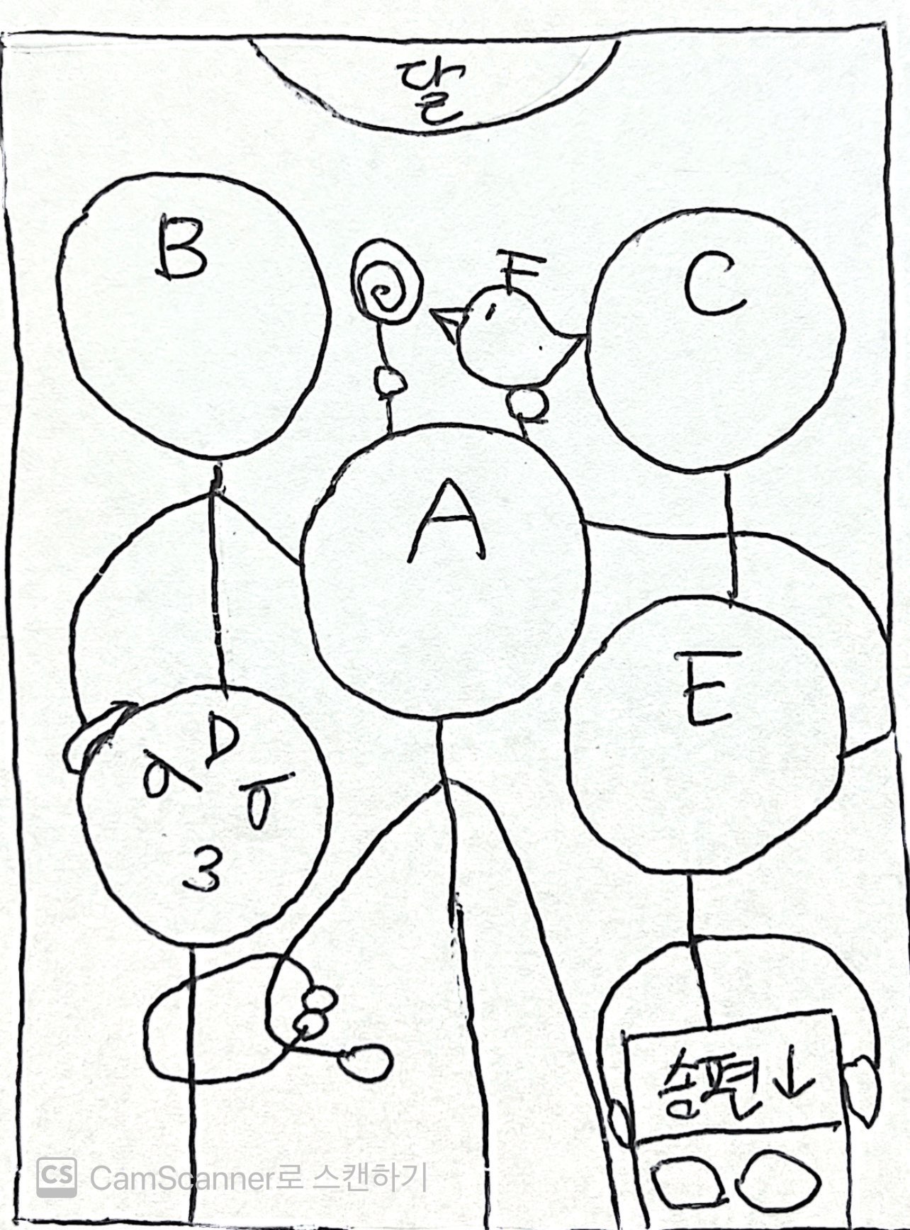 제가... 그린 콘티입니다. 러기님께서 혹시나 못 알아보실까 봐 글씨를 더했습니다. 다소 지저분한 부분은 수정 테이프로 지우고 다시 쓴 흔적입니다. 죄송합니다.