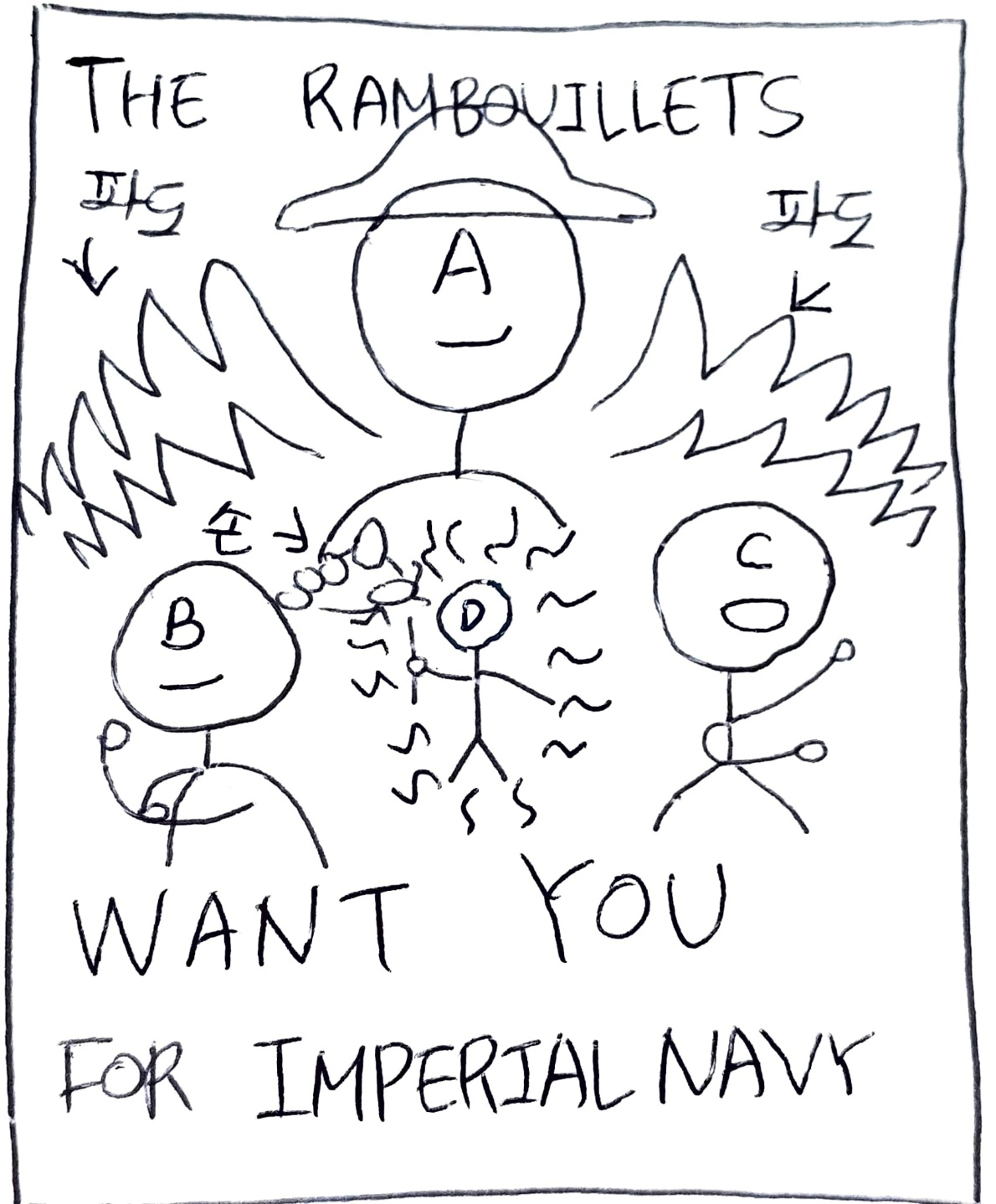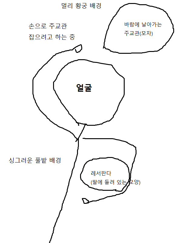 ...제가 직접 그린 프랑수아 콘티입니다. 오른눈이 맞아서 멍든 것처럼 보이지만, 맹세코 그런 일은 없었고, 그저 제가 실수해서 수정 펜으로 지우고 다시 그린 흔적입니다.